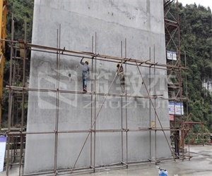 澧水南源大橋位于桑植縣上洞街鄉(xiāng)澧水南源峽谷區(qū),上跨澧水南源河。溝谷陡峭,地勢險峻,相對高差50~100米,集水深、水流急、斜巖、覆蓋層淺、護筒穩(wěn)固性差易造成漏漿、成樁難,環(huán)保要求高等特點。全橋長237.7m,橋跨布置為2*112m預(yù)應(yīng)力混凝土T構(gòu)連續(xù)梁,T構(gòu)最大節(jié)長4.5米,高13.5米,重350噸,采用懸臂掛籃施工;1#主墩位于溝谷底邊,為薄壁空心墩,墩高49米,施工高度達60米。為全線重難點控制性工程。混凝土澆筑后局部位置色差較大,不符合混凝土工程外觀要求。采用筑致杰清水混凝土修補體系對外觀局部色差進行修復(fù)。修復(fù)后的混凝土墻面顏色和周圍基本統(tǒng)一,同時保留原有混凝土的紋理和質(zhì)感。