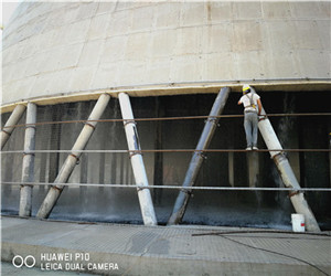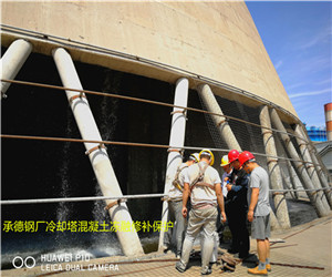 碳化主要是煙囪排放的氣體使周圍空氣中的CO2濃度增加,長期處在高濃度的CO2侵蝕,導致塔身、人字柱的混凝土產生碳化,在有濕氣存在的條件下,碳化的混凝土因收縮而導致開裂。