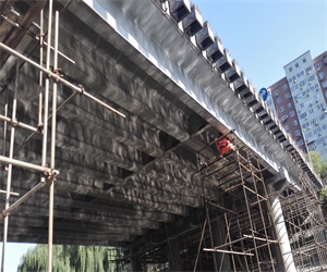 廣安門橋位于西二環(huán),此次中修對橋下梁、墩柱、蓋梁處裂縫進行灌漿處理,并對結(jié)構(gòu)進行加固,以提高整體性和承載能力。裂縫寬度在0.15mm~0.3mm之間,采用筑致杰®自動低壓灌漿技術(shù)灌漿修復(fù),在不破壞原結(jié)構(gòu)的前提下將裂縫灌注飽滿,確?;炷恋恼w性和使用要求。對修補后的橋梁采用筑致杰®Z8混凝土保護劑進行整體保護,延長橋梁的使用年限。