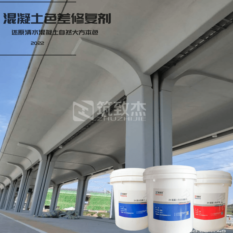 筑致杰®清水混凝土保護(hù)體系是采用進(jìn)口原材料,經(jīng)過(guò)科學(xué)驗(yàn)證配方生產(chǎn)的清水混凝土修飾保護(hù)劑系統(tǒng)材料,全部原料均為水性產(chǎn)品,不含有易老化、易揮發(fā)、刺激有毒的有機(jī)化合物,其主要原料為性能穩(wěn)定的顏填料、硅樹(shù)脂和助劑。由于配方采用了抗老化、抗黃變性能優(yōu)異的有機(jī)硅乳液、硅樹(shù)脂,使得筑致杰®清水混凝土透明保護(hù)系統(tǒng)能長(zhǎng)期提供憎水性、防塵性、耐沾污性和耐老化性能。 C. Z8混凝土保護(hù)劑硅樹(shù)脂面涂 D. 混凝土色差調(diào)整劑和無(wú)機(jī)色漿基底修補(bǔ)材料及工具:清水配套修補(bǔ)膩?zhàn)印⑶逑磩?、刮刀、抹子、砂紙、毛氈、膠帶、攪拌桶、塑料薄膜、滾筒、毛刷等。空壓機(jī) 、切割機(jī)、角磨機(jī)、做孔器、靠尺等。